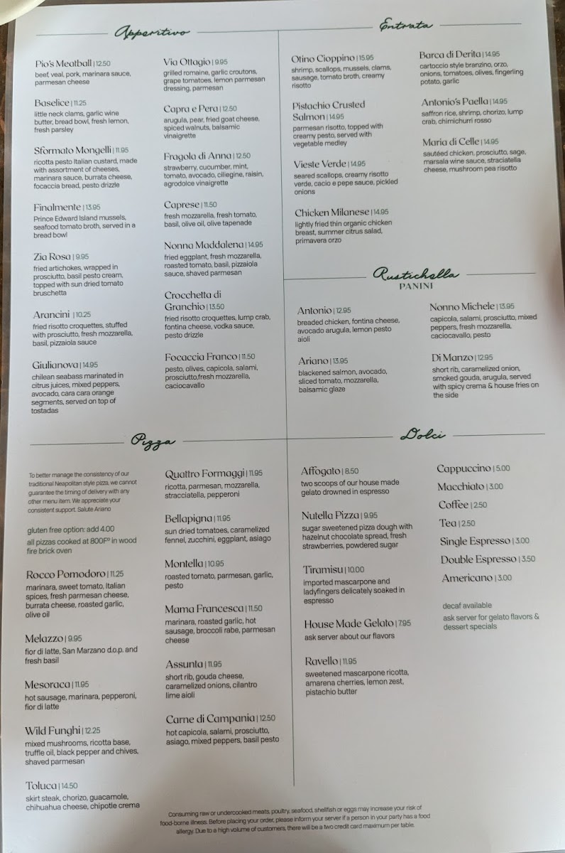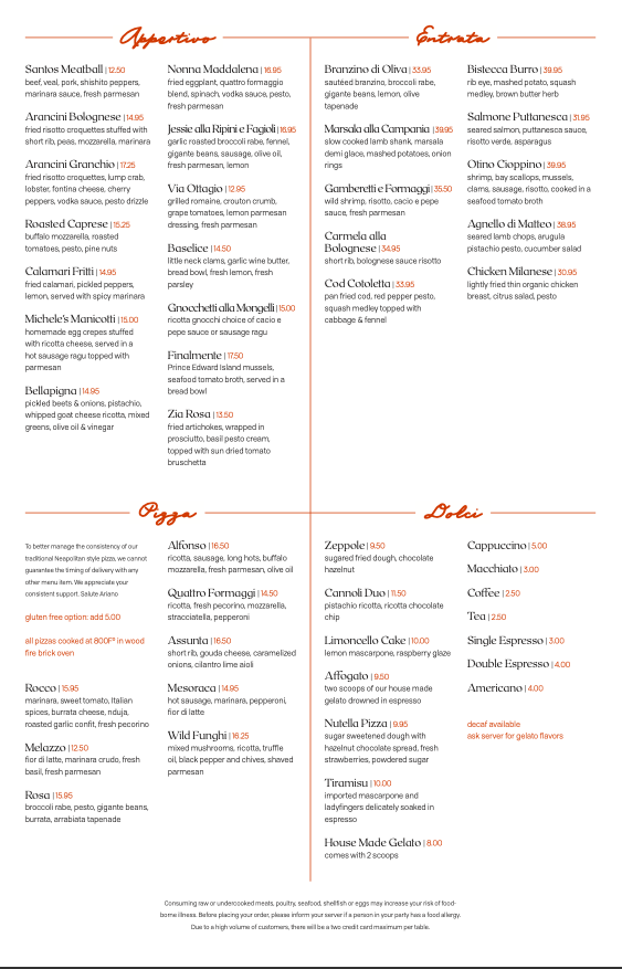 Ariano Menu