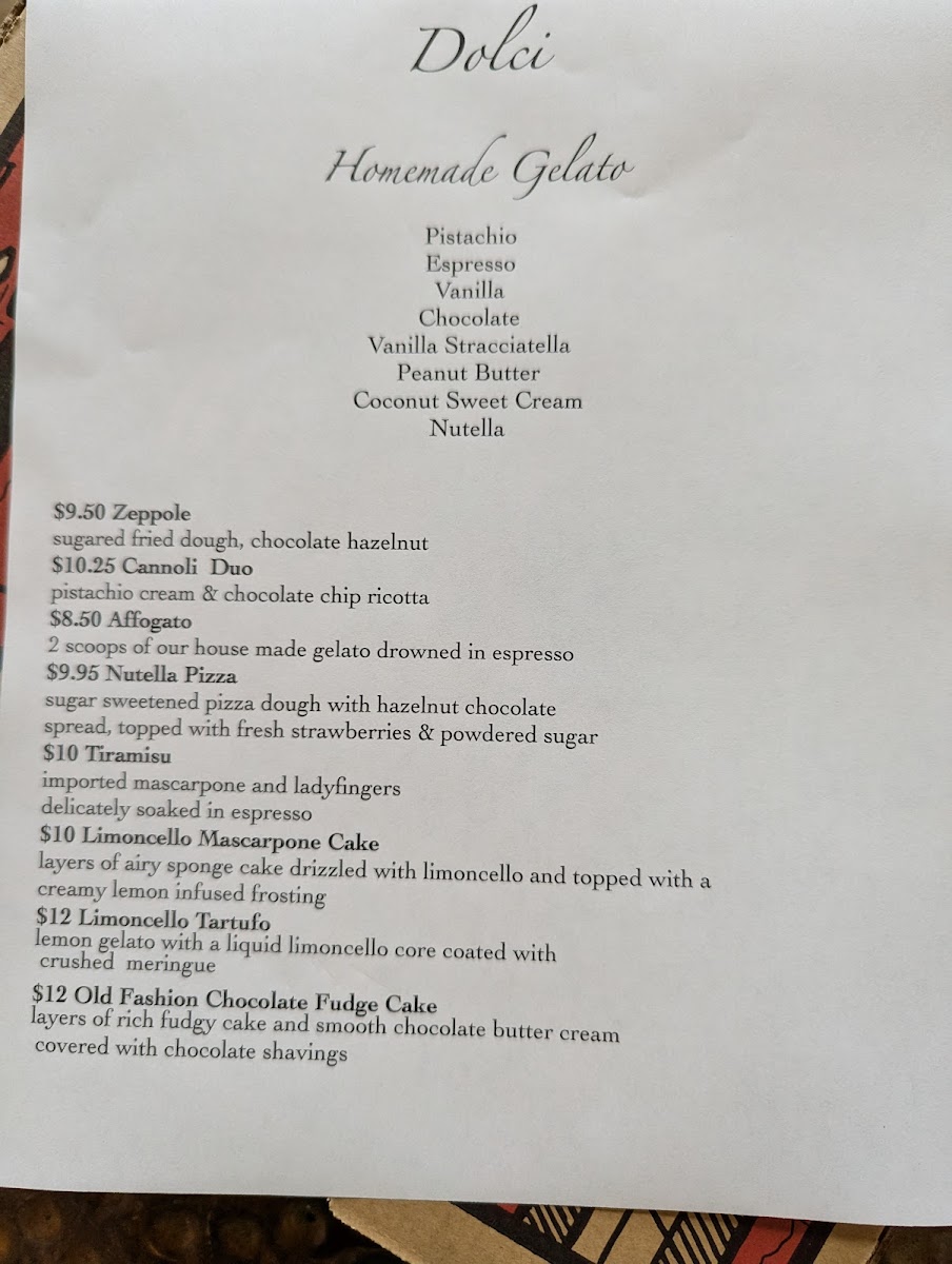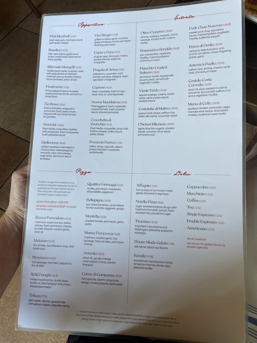 Guests can expect comforting plates like the Pistachio Crusted Salmon or Santos Meatballs alongside a variety of wood-fired pizzas such as the Mesoraca or classic Pepperoni. Pasta dishes feature fresh, homemade elements highlighted in flavorful options like the Spicy Crab Vodka sauce pasta or the ricotta-stuffed Michele’s Manicotti.